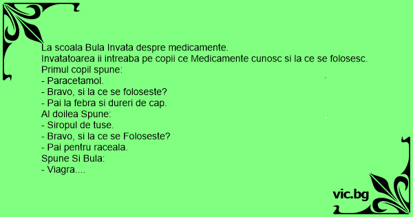 - Bula, de Unde ai invatat tu cuvantul asta? Si la ce Foloseste acest "medicament"?