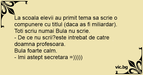 - De ce nu scrii?este intrebat de catre doamna profesoara.