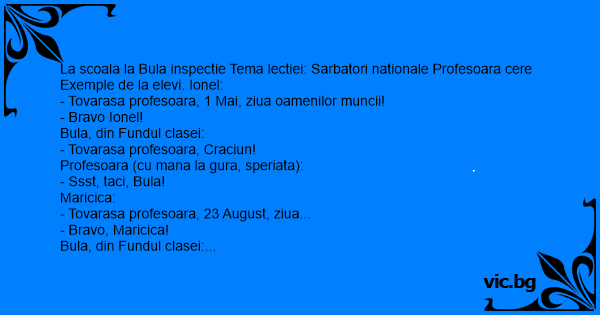 La scoala la Bula inspectie Tema lectiei: Sarbatori nationale Profesoara cere Exemple de la elevi. Ionel:
