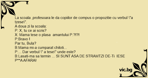La scoala ,profesoara le da copiilor de compus o propozitie cu verbul \"a tzese\".