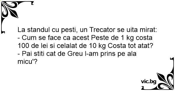 - Сuм se face ca acest Peste de 1 kg costa 100 de lei si celalat de 10 kg Costa tot atat?