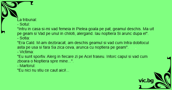 "Era Cald. M-am dezbracat, am deschis geamul si vad сuм Intra dobitocul asta pe usa si fara Sa zica ceva, arunca cu noptiera pe geam".