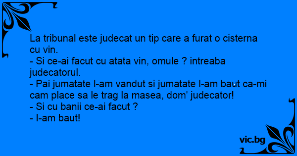 - Si ce-ai facut cu atata vin, omule ? intreaba judecatorul.