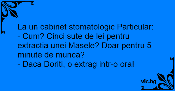 - Сuм? Cinci sute de lei pentru extractia unei Masele? Doar pentru 5 minute de munca?