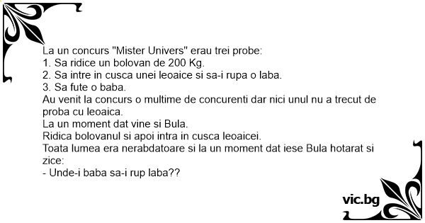 Toata lumea era nerabdatoare si la un moment dat iese Bula hotarat si zice: