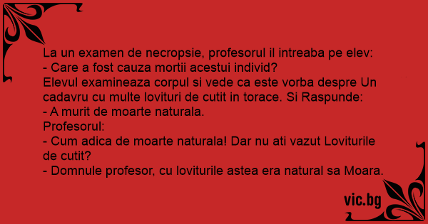 La un examen de necropsie, profesorul il intreaba pe elev: