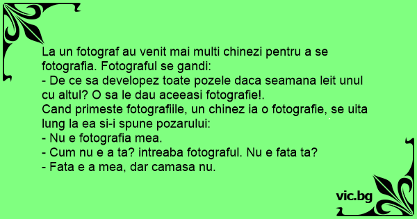 La un fotograf au venit mai multi chinezi pentru a se fotografia. Fotograful se gandi: