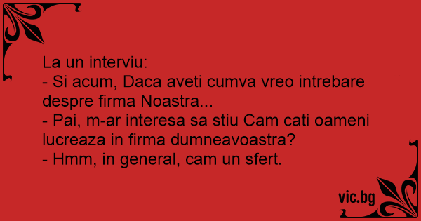 - Pai, m-ar interesa sa stiu Cam cati oameni lucreaza in firma dumneavoastra?