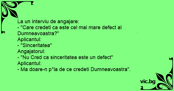 - "Care credeti ca este cel mai mare defect al Dumneavoastra?"