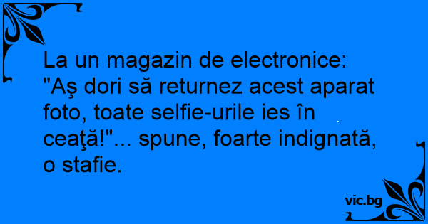 "Aş dori să returnez acest aparat foto, toate selfie-urile ies în ceaţă!"... spune, foarte indignată, o stafie.