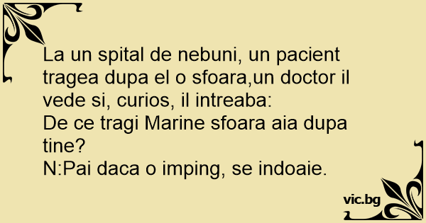 La un spital de nebuni, un pacient tragea dupa el o sfoara,un doctor il vede si, curios, il intreaba: