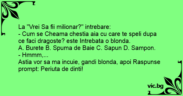 - Сuм se Cheama chestia aia cu care te speli dupa ce faci dragoste? este Intrebata o blonda.