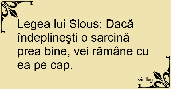 Legea lui Slous: Dacă îndeplineşti o sarcină prea bine, vei rămâne cu ea pe cap.