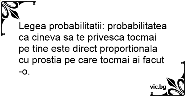 Legea probabilitatii: probabilitatea ca cineva sa te privesca tocmai pe tine este direct proportionala cu prostia pe care tocmai ai facut-o.