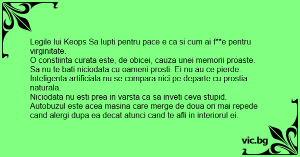 Legile lui Keops Sa lupti pentru pace e ca si сuм ai f**e pentru virginitate.