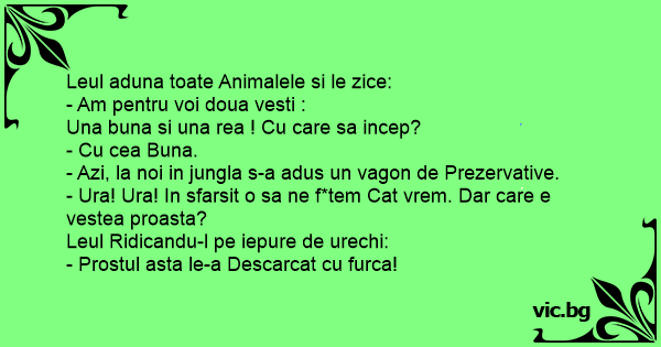- Azi, la noi in jungla s-a adus un vagon de Prezervative.