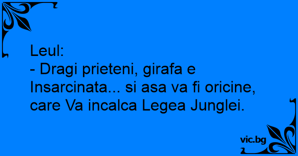 - Dragi prieteni, girafa e Insarcinata... si asa va fi oricine, care Va incalca Legea Junglei.