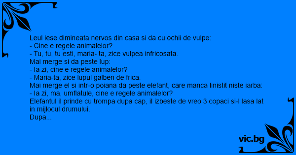 Leul iese dimineata nervos din casa si da cu ochii de vulpe: