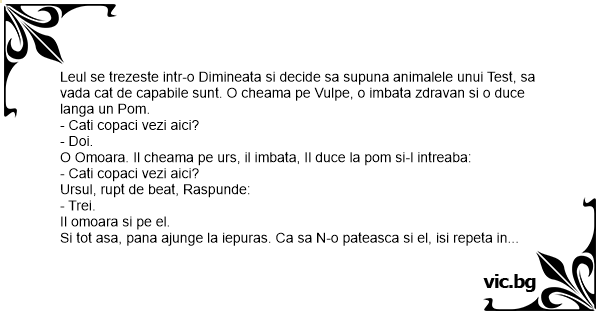 Se Imbata iepurasul, se face pulbere, il duce leul Langa pom si intreaba: