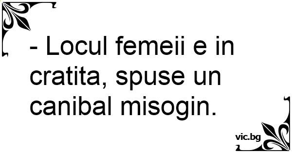 - Locul femeii e in cratita, spuse un canibal misogin.