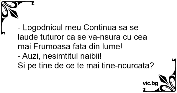 - Logodnicul meu Continua sa se laude tuturor ca se va-nsura cu cea mai Frumoasa fata din lume!