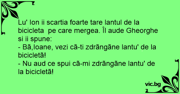 - Bã,Ioane, vezi cã-ti zdrãngãne lantu' de la bicicletã!