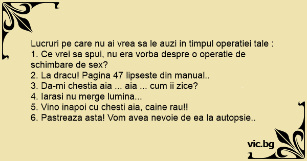 Lucruri pe care nu ai vrea sa le auzi in timpul operatiei tale :