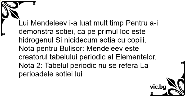 Nota pentru Bulisor: Mendeleev este creatorul tabelului periodic al Elementelor.