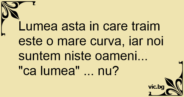 Lumea asta in care traim este o mare curva, iar noi suntem niste oameni... "ca lumea" ... nu?