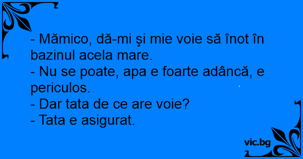 - Mămico, dă-mi şi mie voie să înot în bazinul acela mare.