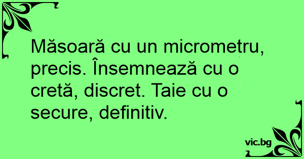 Măsoară cu un micrometru, precis. Însemnează cu o cretă, discret. Taie cu o secure, definitiv.