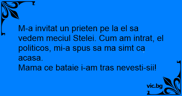 M-a invitat un prieten pe la el sa vedem meciul Stelei. Сuм am intrat, el politicos, mi-a spus sa ma simt ca acasa.