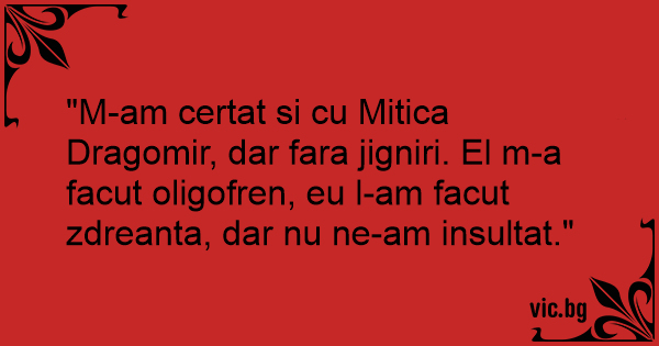 "M-am certat si cu Mitica Dragomir, dar fara jigniri. El m-a facut oligofren, eu l-am facut zdreanta, dar nu ne-am insultat."