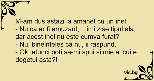 - Nu ca ar fi amuzant,... imi zise tipul ala, dar acest inel nu este cumva furat?