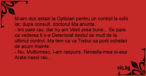 M-am dus astazi la Optician pentru un control la ochi iar, dupa consult, doctorul Ma anunta: