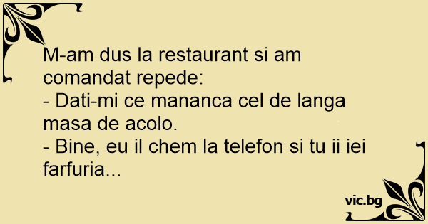 - Dati-mi ce mananca cel de langa masa de acolo.