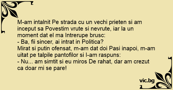 M-am intalnit Pe strada cu un vechi prieten si am inceput sa Povestim vrute si nevrute, iar la un moment dat el ma Intrerupe brusc:
