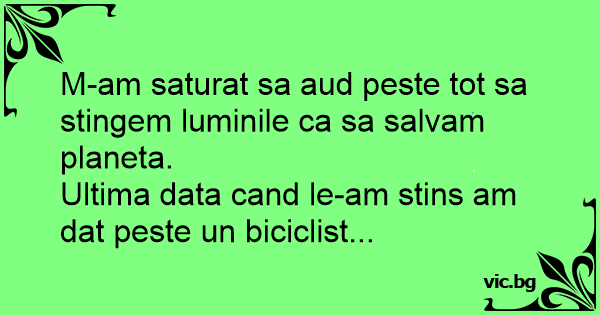 M-am saturat sa aud peste tot sa stingem luminile ca sa salvam planeta.