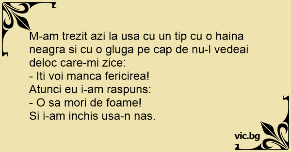 M-am trezit azi la usa cu un tip cu o haina neagra si cu o gluga pe cap de nu-l vedeai deloc care-mi zice: