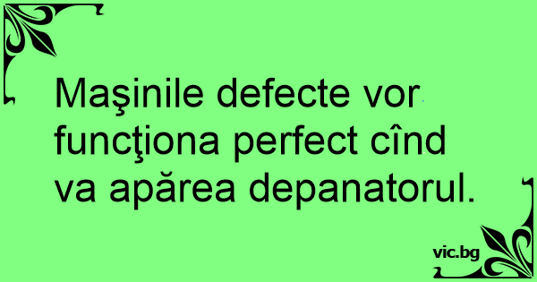 Maşinile defecte vor funcţiona perfect cînd va apărea depanatorul.