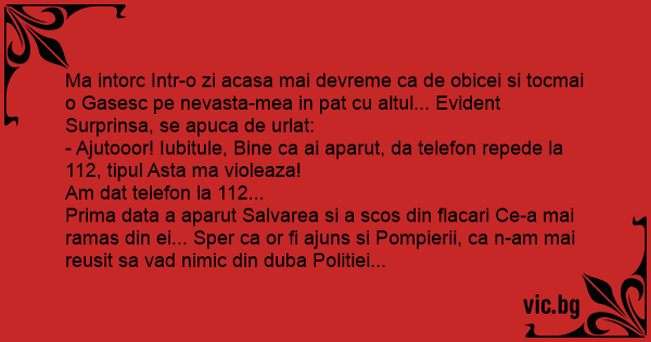 - Ajutooor! Iubitule, Bine ca ai aparut, da telefon repede la 112, tipul Asta ma violeaza!