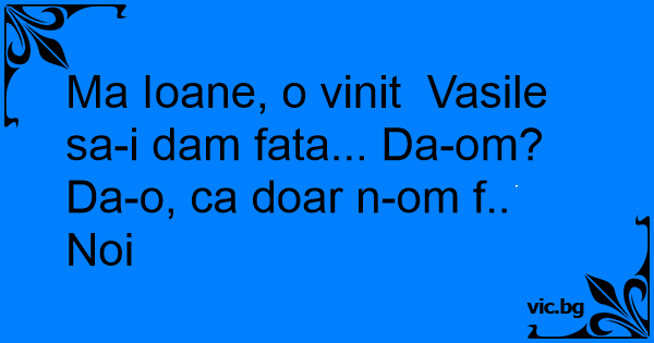 Ma Ioane, o vinit Vasile sa-i dam fata... Da-om?