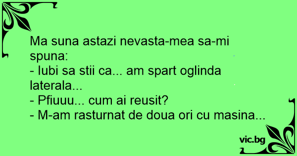 - Iubi sa stii ca... am spart oglinda laterala...
