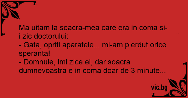 - Domnule, imi zice el, dar soacra dumnevoastra e in coma doar de 3 minute...