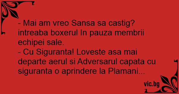 - Mai am vreo Sansa sa castig? intreaba boxerul In pauza membrii echipei sale.