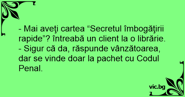 - Sigur că da, răspunde vânzătoarea, dar se vinde doar la pachet cu Codul Penal.