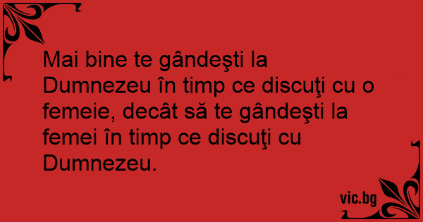 Mai bine te gândeşti la Dumnezeu în timp ce discuţi cu o femeie, decât să te gândeşti la femei în timp ce discuţi cu Dumnezeu.