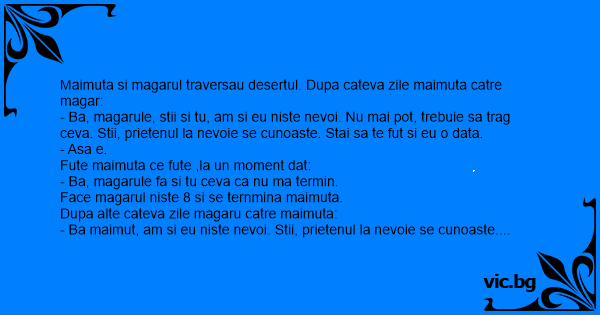 Maimuta si magarul traversau desertul. Dupa cateva zile maimuta catre magar: