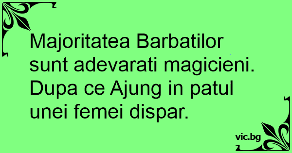 Majoritatea Barbatilor sunt adevarati magicieni. Dupa ce Ajung in patul unei femei dispar.