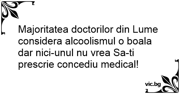 Majoritatea doctorilor din Lume considera alcoolismul o boala dar nici-unul nu vrea Sa-ti prescrie concediu medical!